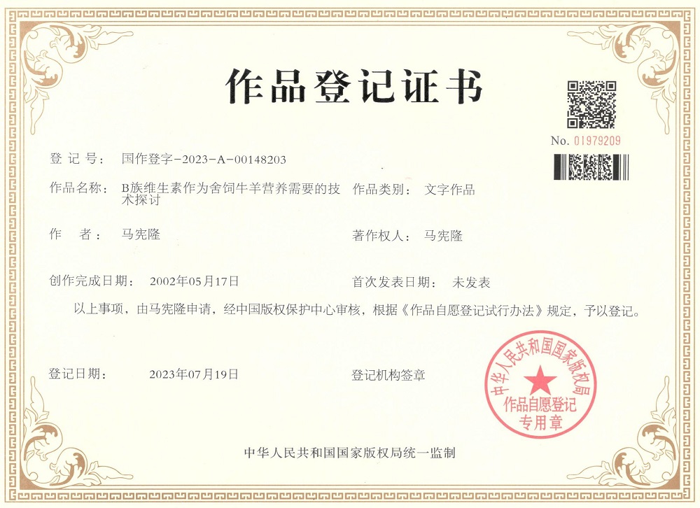 B族維生素的重要作用登記證書